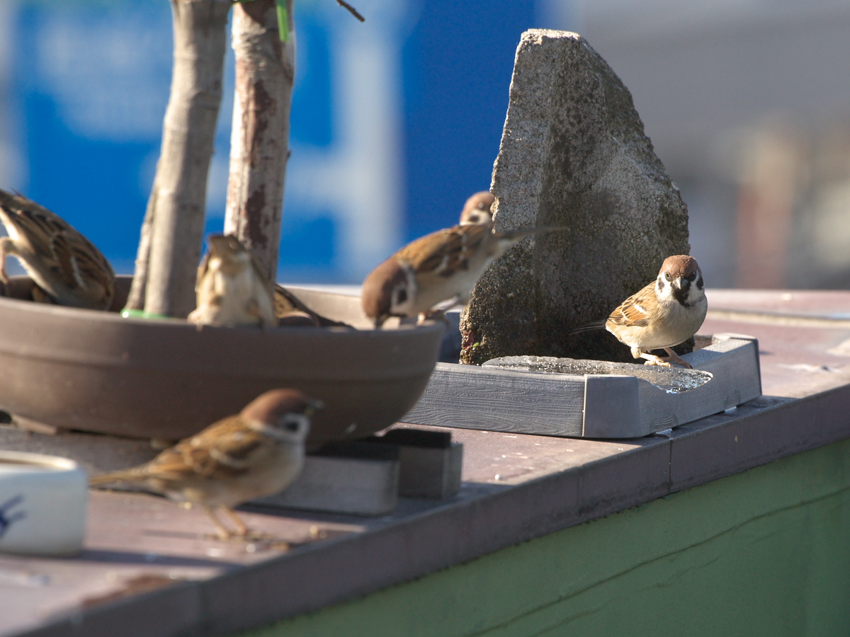 ↑好奇心旺盛なスズメが触ってみていました(^_^)。