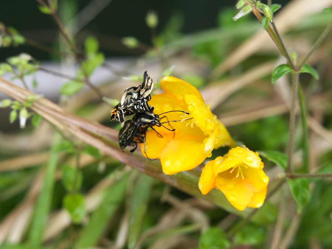 TWK屋上に咲いていたフリージアの花の蜜を吸わせてやろうと思い移動してあげたが、この後姿が見えなくなってしまった。もしかするとトリか何かに食べられてしまったのかもしれない。