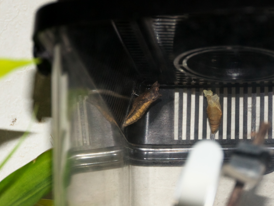結局この飼育ケースで蛹になった7匹のうち、無事アゲハチョウになって空に飛んで行ったのは5匹だけど、それ以外に「5号」と「7号」が幼虫から蛹になる時に失敗して命を落としているので、成功率は9分の5ということになる。