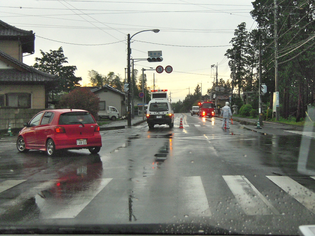 そのすぐ右上にあるB地点は西田井小学校。ここは校舎の窓ガラスがほとんど割れてしまい、校庭のフェンスや植木がなぎ倒されていたが、交通整理をしてくれていた地元の方々の気持ちを考えると、とてもカメラを向ける気にはなれなかった。