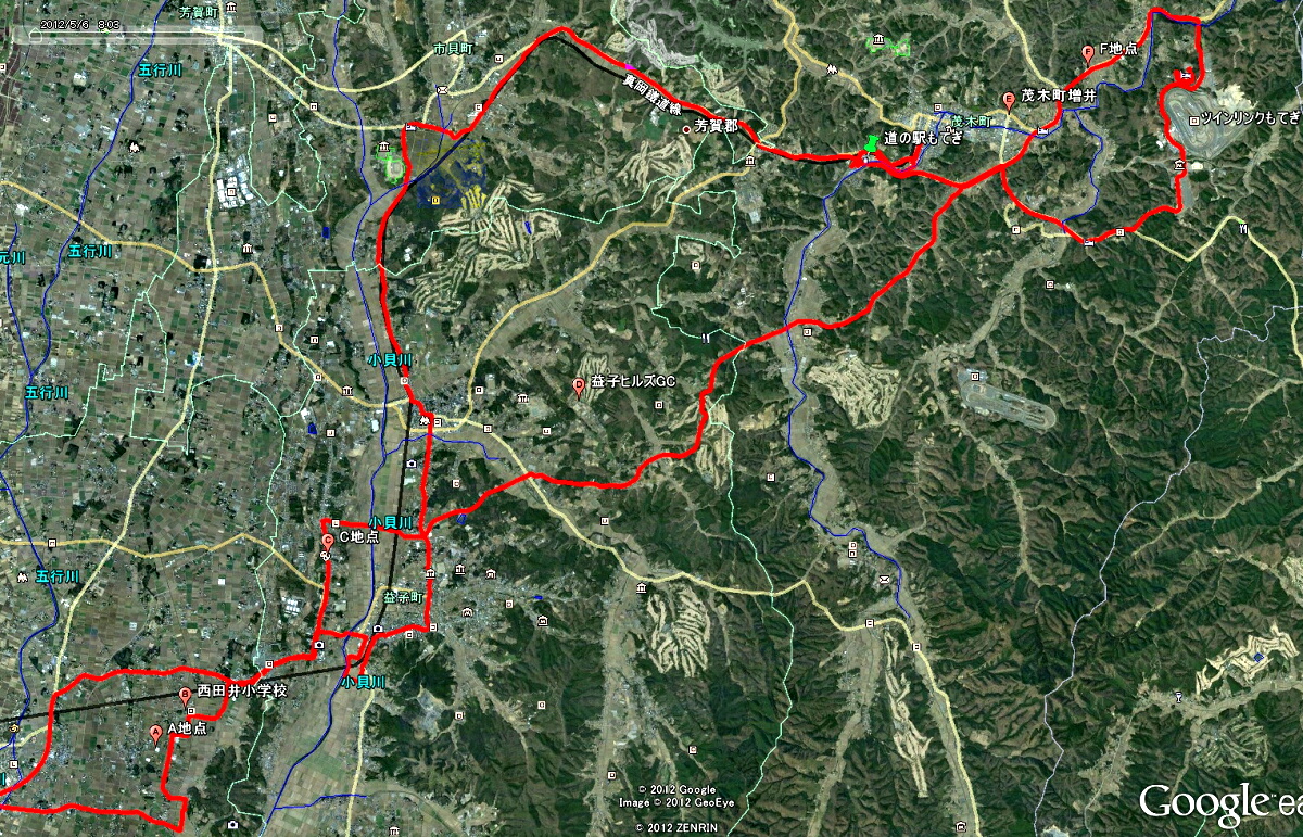 そして一気に画像右上に飛んで、E地点は茂木町増井地区。ここも家屋半壊等の被害が集中していると報じられた地域だ。