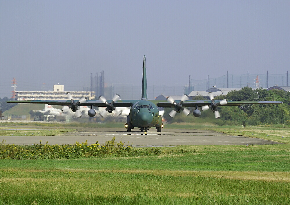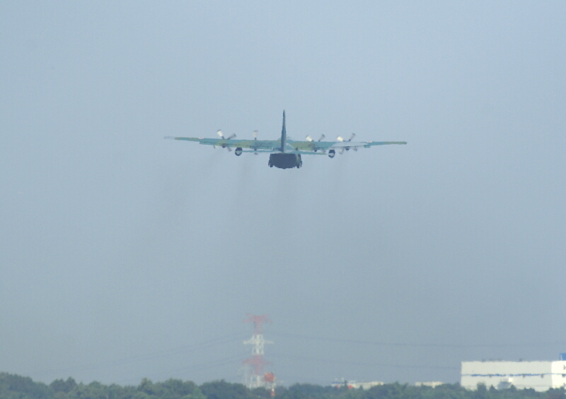 ところが、やはりジェット機とプロペラ機の違いなのだろうか、C-130は「ぶぅ~ん」という音がわずかに大きくなってしばらくしてからゆっくりと加速を始め、かなりの時間滑走してから「ふわぁ~っ」という感じで少しずつ上昇して行った