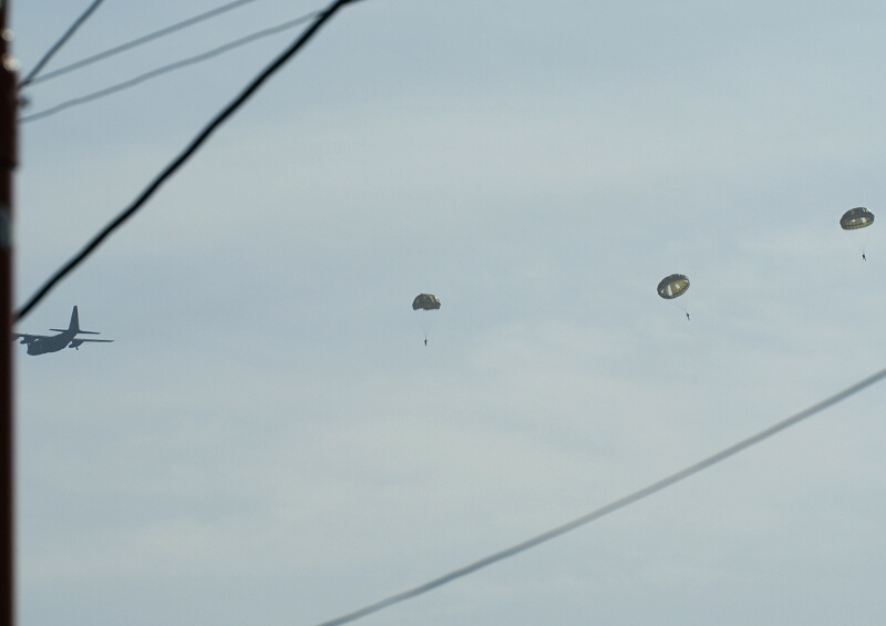 結局パラシュート降下の現場を押さえたのは、この1枚しかなかった(証拠写真にしかならないボツ)