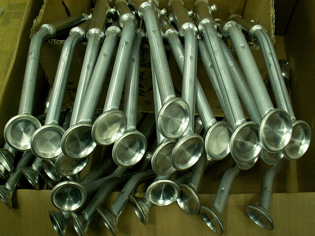 これを、車種ごとに作られた「冶具」にセットし細い方のバーに溶接し、前にこのブログで紹介した、先端のジョイント部(唯一の外注部品)とパイプを溶接して出来あがった部分と溶接して、さらにスプリングを引っかけるピンを溶接し、やっとアルミサイドスタンドの「バー」部分が完成するというわけだ。