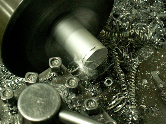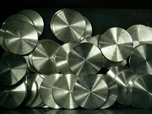 まず、丸棒を旋盤で突っ切って両面を仕上げ、このような「円板」を作る