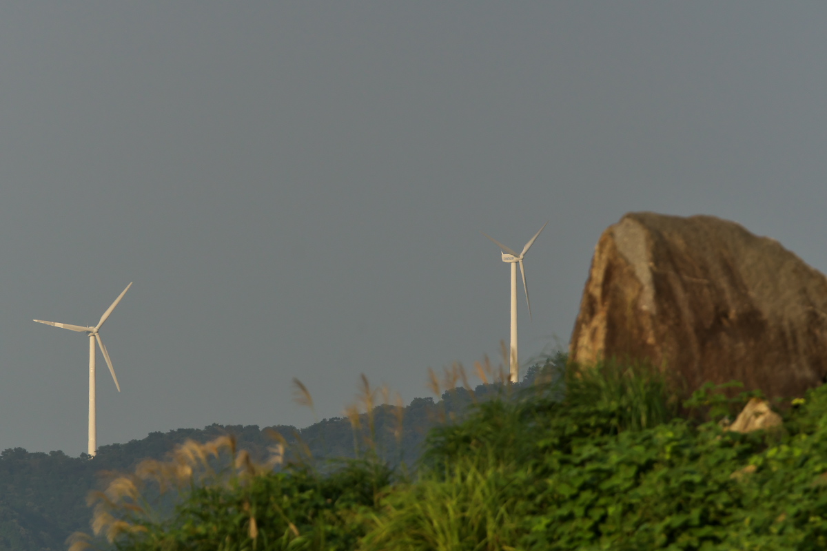 西日を浴びる双発プロペラ機‥‥‥じゃなくって風力発電の風車↓
