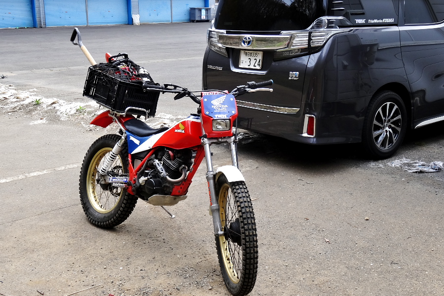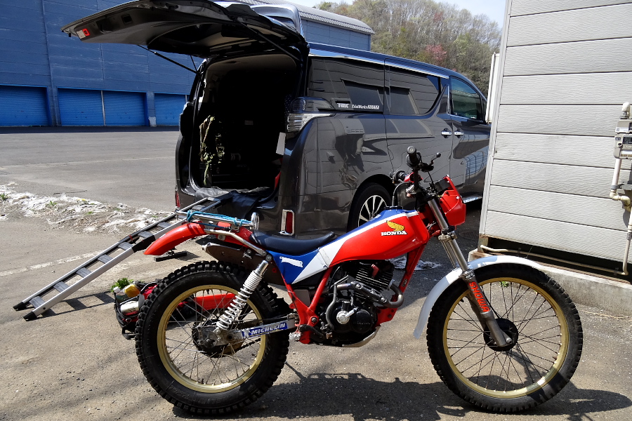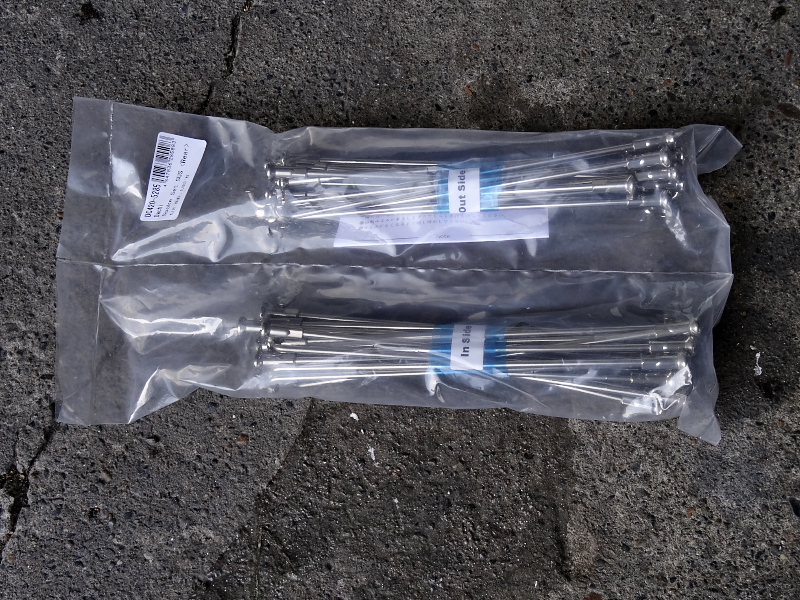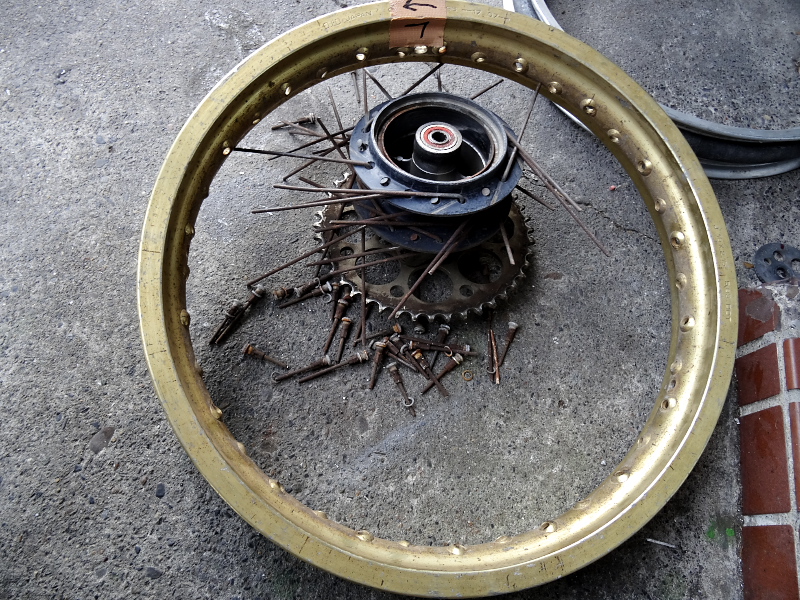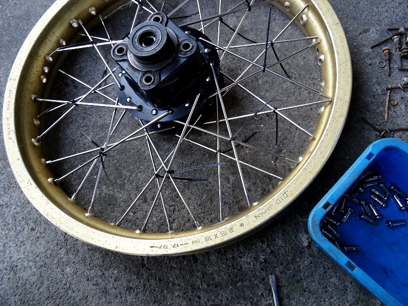 最近では百里基地行きやツインリンクもてぎでの「機材運搬車」として絶賛大活躍中のわがTLR200ですが、スポークのサビが酷く見た目も悪いし、緩んできてるのにニップルが錆付いてて増し締めもできず困っていたところに、ステンレス製のスポーク&ニップルSETが発売されたので、思い切って交換することにした。