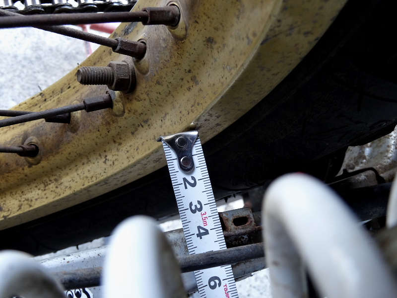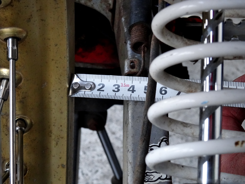交換作業に入る前に、まず左右の位置関係をスイングアームを基準に測っておく↓