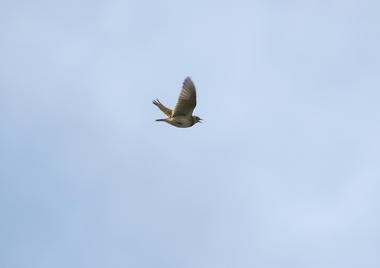 ↑その後、私の上を「ピーチクパーチク」と賑やかに囀りながらホバリングするヒバリ。
