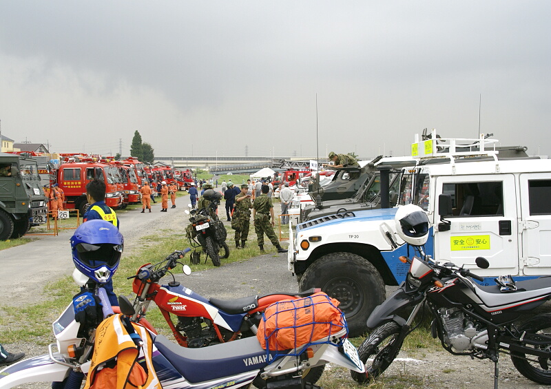 この場所は、昨日のブログに載せた写真を撮った場所なのだが、やはり訓練に参加する自衛隊や消防署の皆さんもすでに集まっていて、ものものしい雰囲気だ。