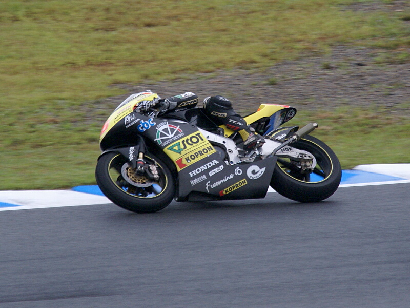 250ccクラスにチーム・スコット(HONDA)よりフル参戦している高橋裕紀選手です。(裕紀選手と私の関係(?)に関しては、このBLOG右上にある「ブログ内検索」で“高橋裕紀”と入れて検索すればわかると思います)