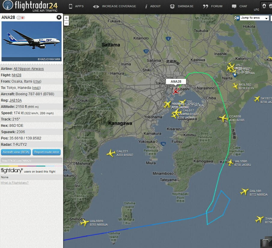 きょうはいろんな所で雷が大暴れ。ヒコーキの経路にも影響が出て、羽田のアプローチルートも何度も変更され、到着機もいろんな所を右往左往させられていたようです。