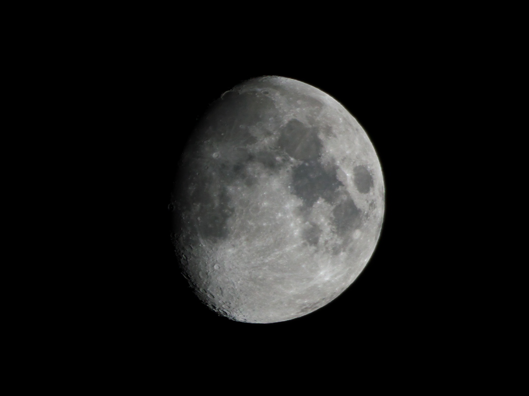 ↑今夜20時頃の月(月齢10)ですが、この位置は成田発の西行き便の航路なので狙い目、と思っていると―――