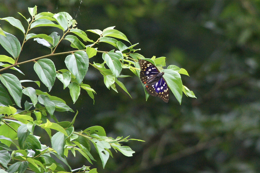 オオムラサキは羽化したばかりの今が見ごろで、日が経つにつれ羽がボロボロになって美しさが半減してしまうと聞くが、あの激しい飛び方を見たらそれも納得、って感じだ。
