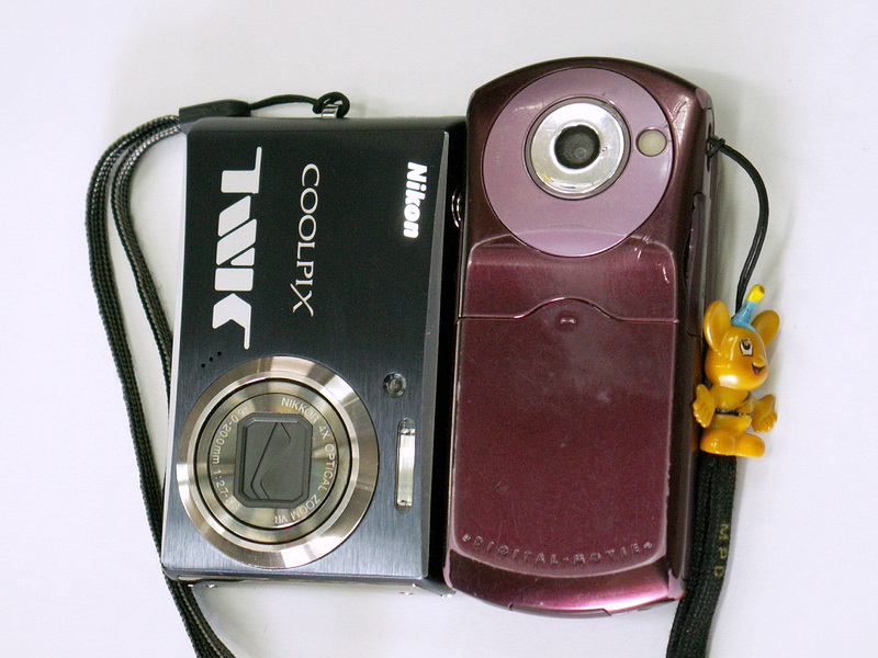 左は以前安く売られてたNikonのコンパクトデジカメ。これで撮ってminiSDカードに保存した画像を、右の携帯(もう5年くらい使ってる旧式)で読み込んで、このBLOGに投稿できるかテストしたんだけど―――まぁ一応できたけど携帯のカメラで撮ったのと大して変わらないショボい画像だねぇ‥‥‥(ーー;)。もっと画像サイズ大きくした方がよかったかも!?!?