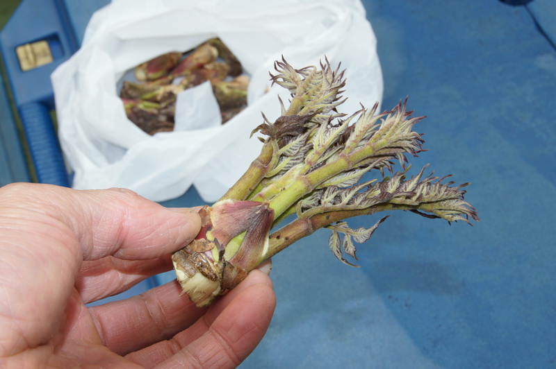 これ以外にもランド内の“タラの芽ポイント”をポリ袋を持ってぜ~んぶ歩いて収穫してきた分に加え、きょうはTWK前の県道脇・ツツジの植え込みの中のタラの芽も―――