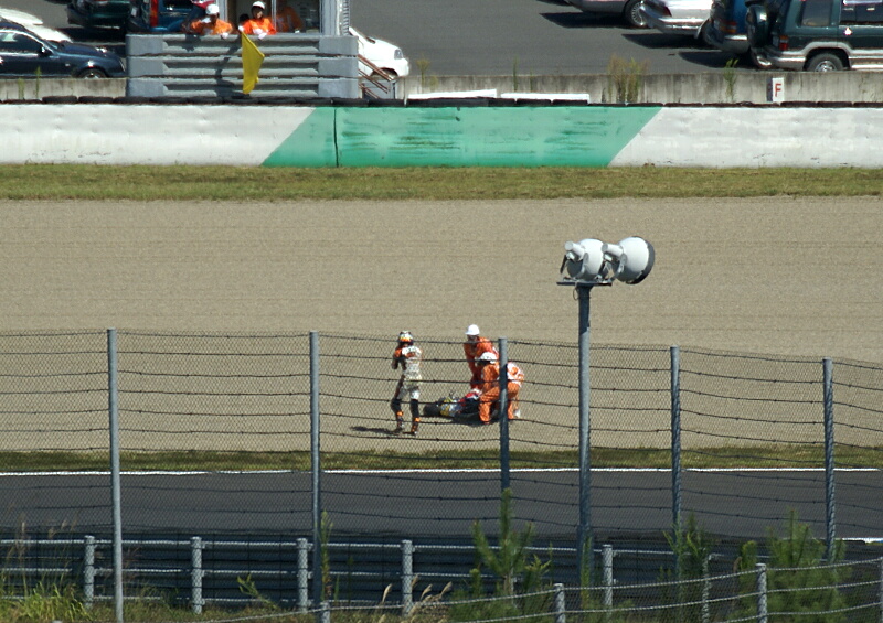 そして15周目の第3コーナーと第4コーナーの中間付近でハイサイド転倒。