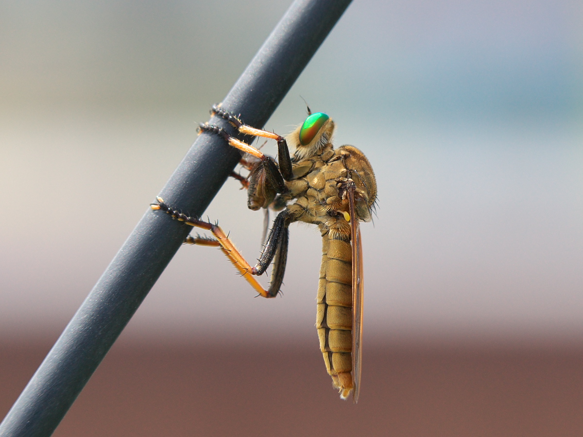 「アオメアブ」がコガネムシ系の獲物を捕まえて、その体液を「チューチュー」と吸っているところでした―――(@_@;)。