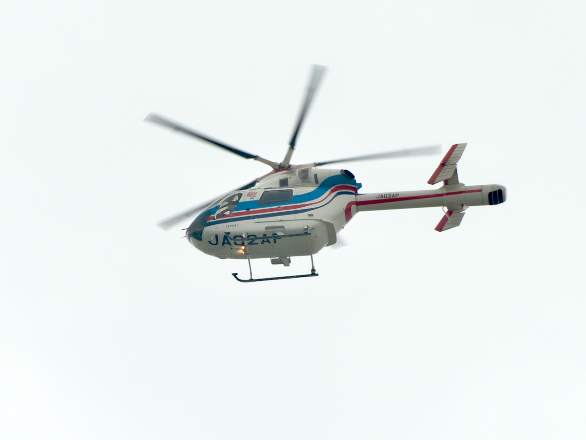 ↑JA02AP―――朝日新聞の取材ヘリ「はやどり」(MD902)だ。