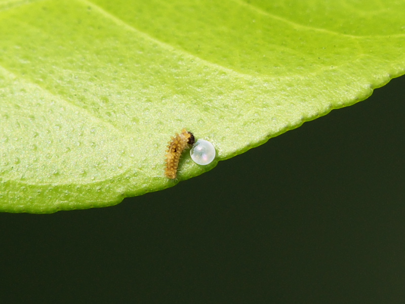 で、きょうはアゲハではなくその幼虫の生まれたばかりの写真をアップします↓