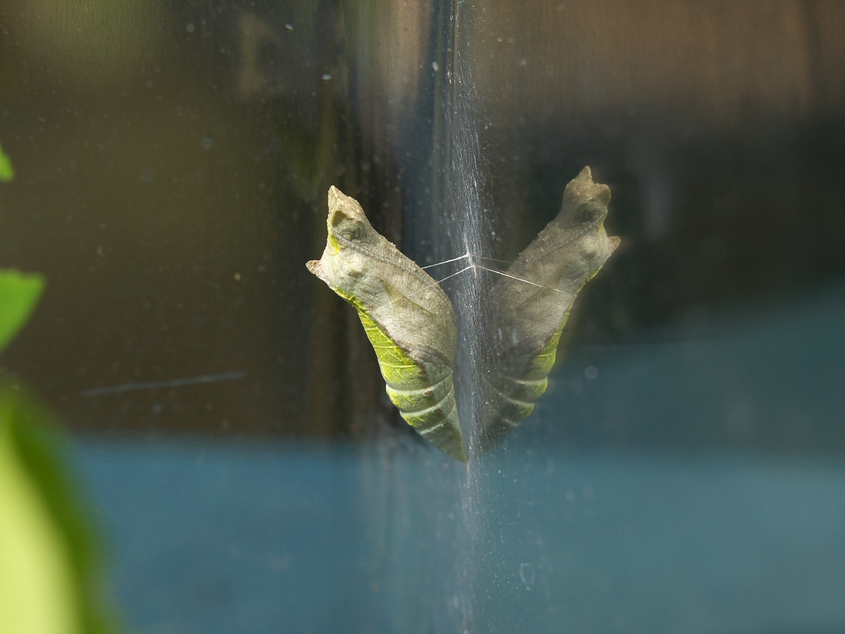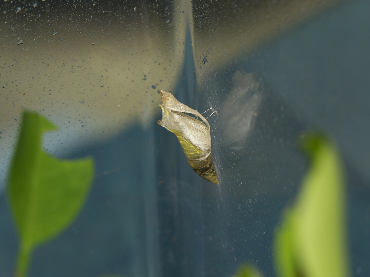 だが、なにせアゲハの幼虫を飼育するのは初めてなので、「もしかしたら死んじゃってるかも」とか「蛹の中は寄生蜂にやられちゃってるかも‥‥‥」とか、不安は尽きない。