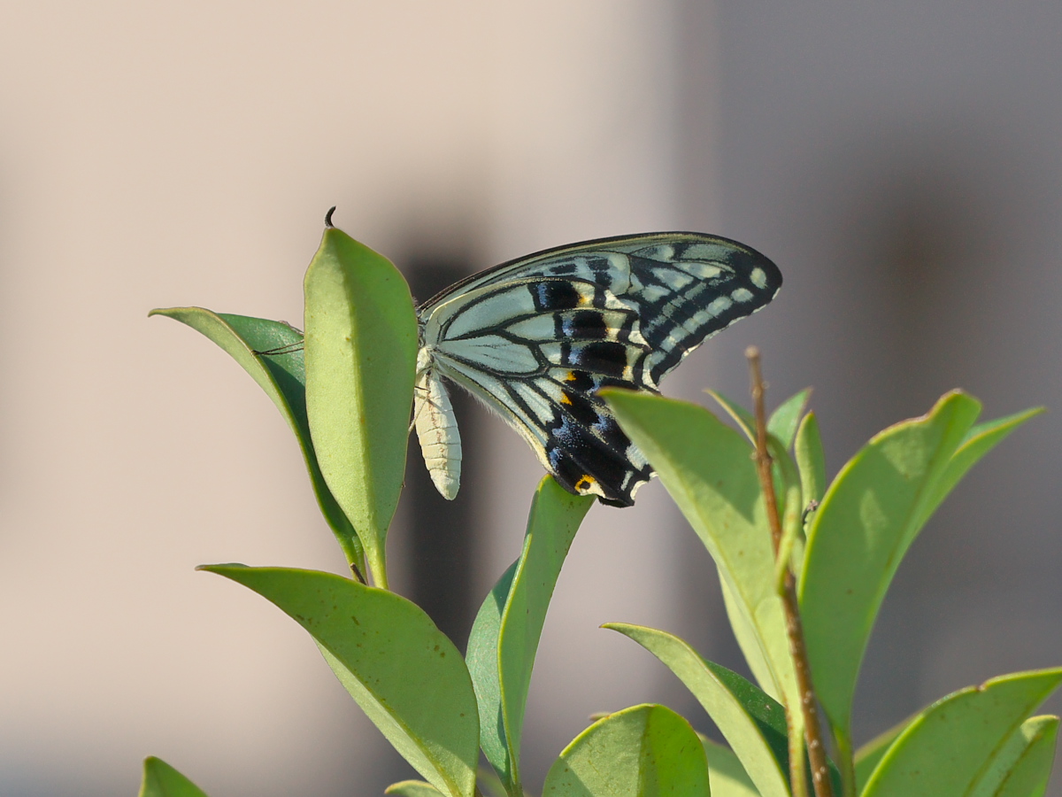 そして翌29日の朝、また8時半に起きて被せておいた段ボール箱を取ってみると――― 1号くんの時と同じように、もう立派なアゲハチョウの姿に変態完了した2号くんが、狭い飼育ケースの中でバタバタと飛び回っていました!!
