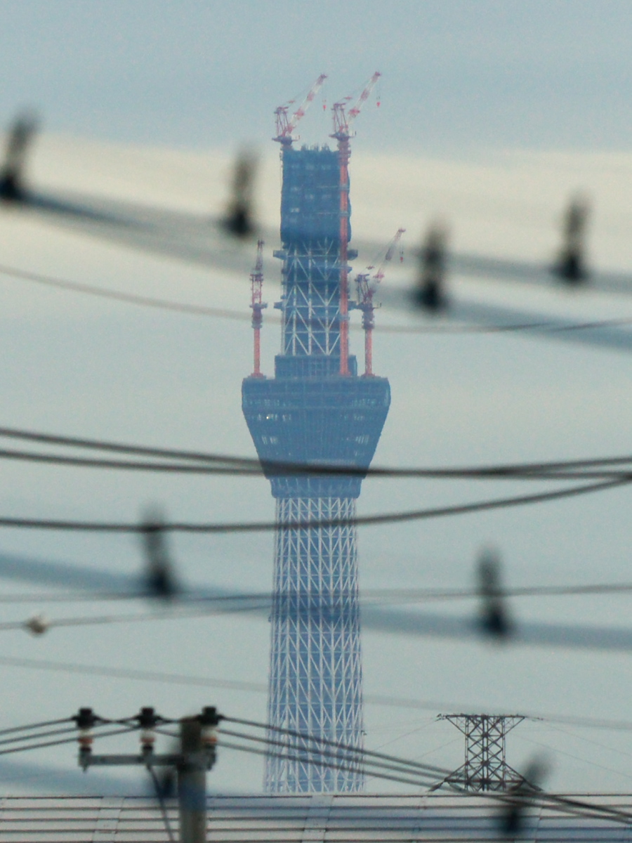 でも、空気が澄み渡っていてTWK屋上からの眺めは最高。東京スカイツリーもこんなにハッキリと見えていました↓