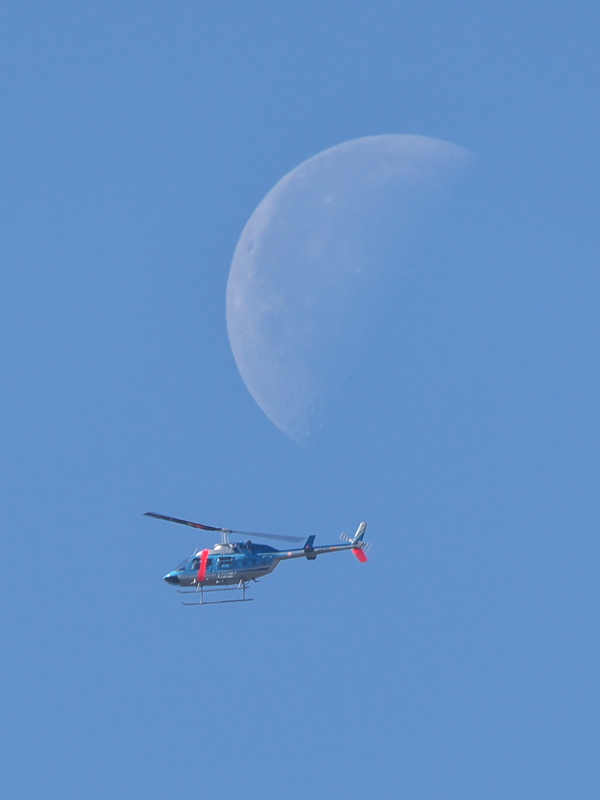 惜しい!!警視庁のはやぶさ2号、もうちょっと高く飛んでくれたら月と重なったのにぃ‥‥‥(^_^;)。