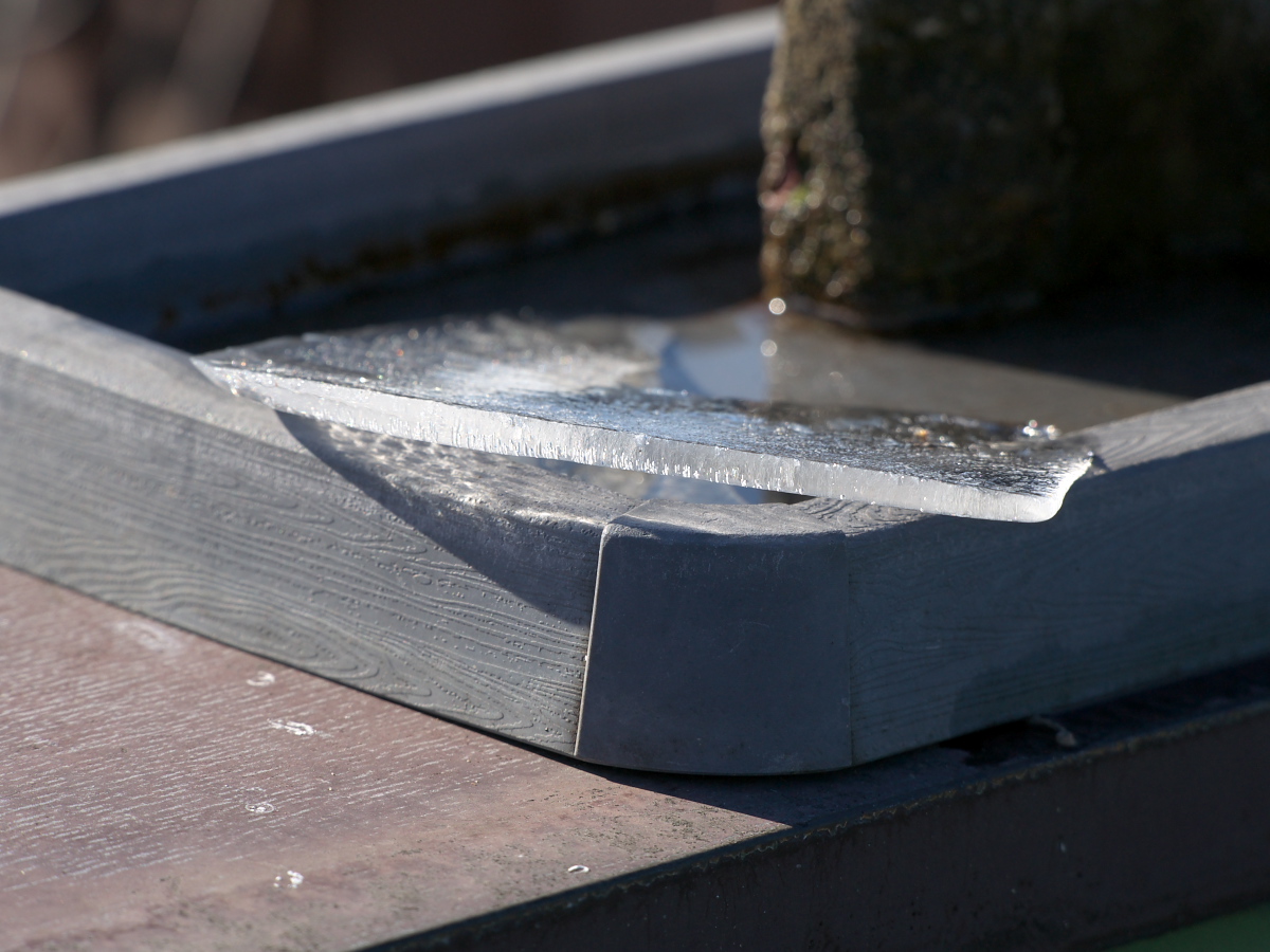 ↑スズメのエサ台に溜まった水が凍った(最大厚さ7.4mm(目測))。