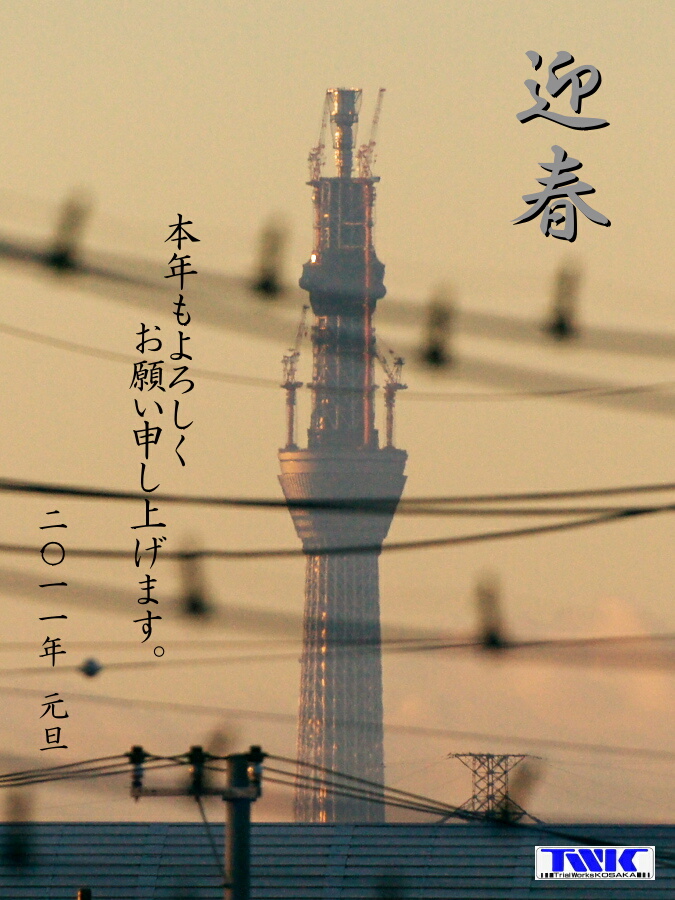 (↑1月2日早朝TWK屋上にて。いつも逆光の東京スカイツリーに横から朝日が当たっていたので撮ってみました)