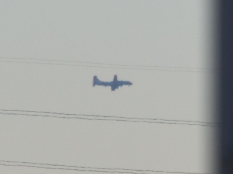 機首と翼端がTAの特長である蛍光オレンジなのがかろうじて判るが、大気のメラメラがひどくってピントもへったくれもありゃしない(*_*)。