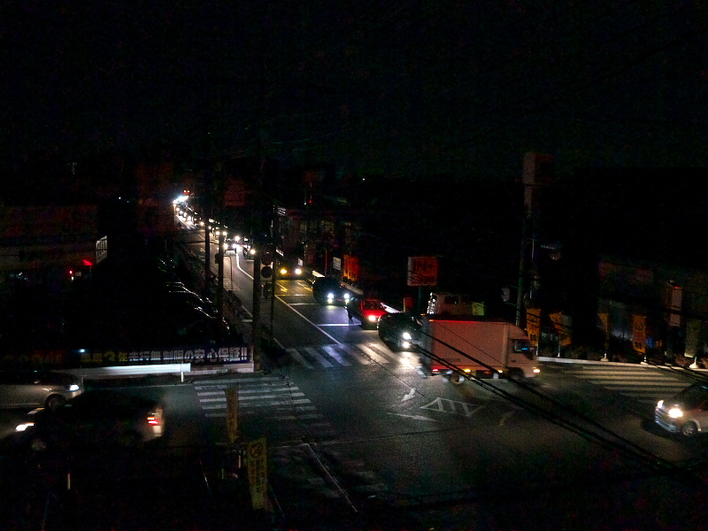 すぐに電源切り替え作業を行ない、いつもと同じ夜に戻ることができたが、屋上に出てみると、いつもは中古車屋の照明や吉野家の看板などで昼間のように明るいTWK周辺がクルマのライト以外は真っ暗になり、今まで見たことのない風景が広がっていた。