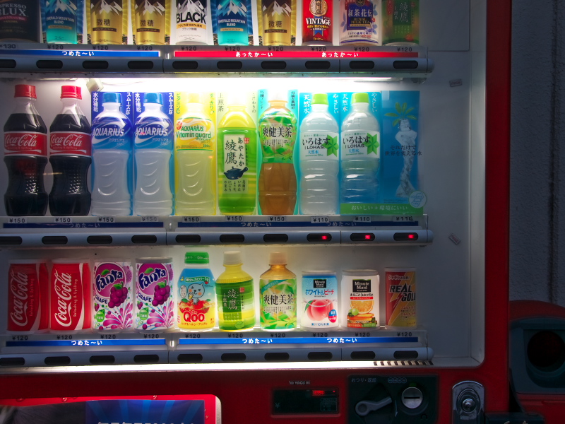 TWKの自動販売機も、いつもはぜんぜん売れない「天然水」がぜ~んぶ売り切れ(@_@;)↓
