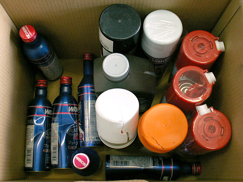 ↑今回の地震でのTWKの被害はこれだけ(棚から落ちて売り物にならなくなったオイル類)。