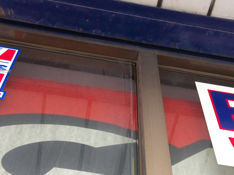 東側の窓ガラス(縦2,100mmx横1,500mmのハメ殺し)が横にずれて、7~8mmほど隙間ができていたのだ。