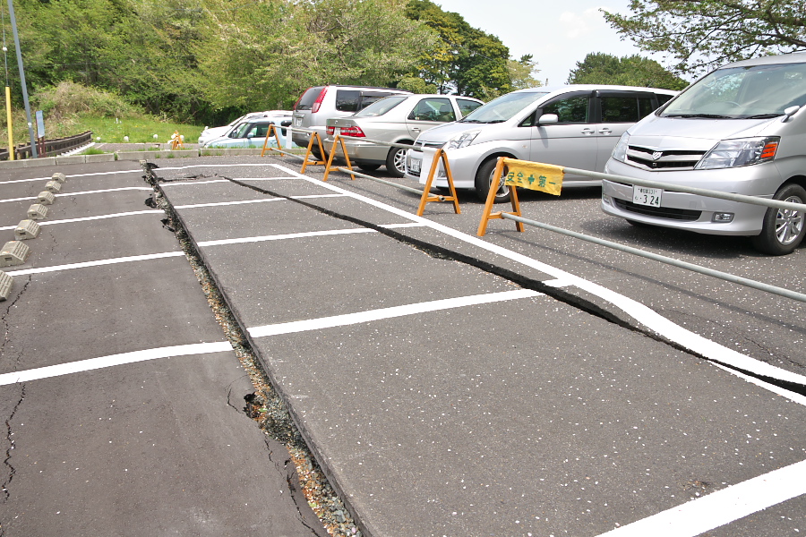↑灯台横の高台にある駐車場は、一部が崖崩れで大きく傾き立ち入り禁止となっていた。