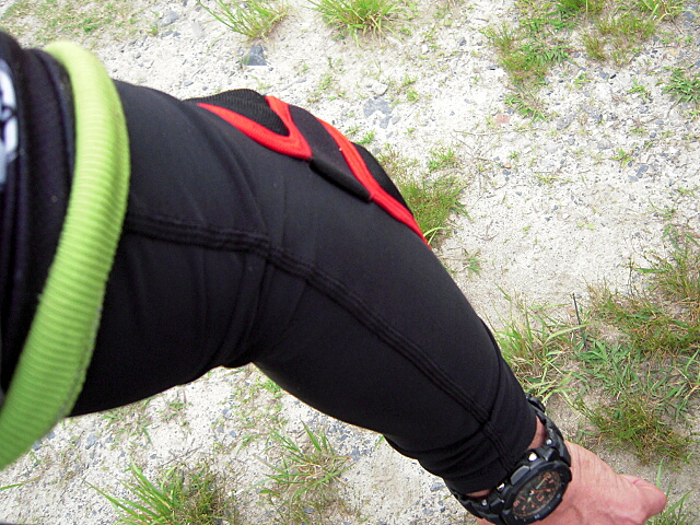 で、今回試したDFG シールドレイヤーエルボーガードだけど、まず薄手のパッドなのでジャージの下に装着してもライディングの支障にならない。