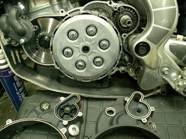 お客様からの依頼は保安部品取り付けを含む多くの項目にわたり、かなりの時間を要する作業だ。まずはクラッチカバーの交換から