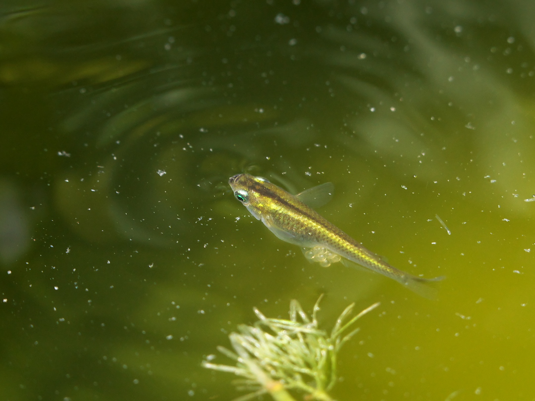 きょうは全部で5匹の稚魚を確認できたけど、とにかく小さいので大人のメダカが食べてしまうという話も納得。
