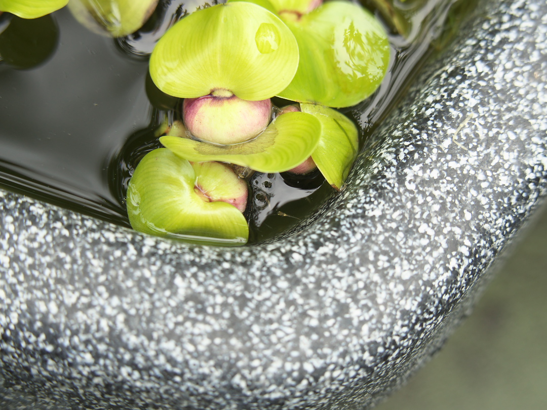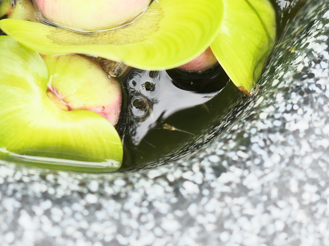 ホテイアオイの脇に「稚魚」発見!!↓