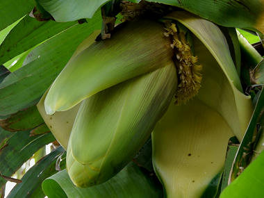 最近TWKの横にある「バショウ」の木が元気いっぱいなんだけど、きょうよく見たらなにやら怪しげな「花」のようなものを発見