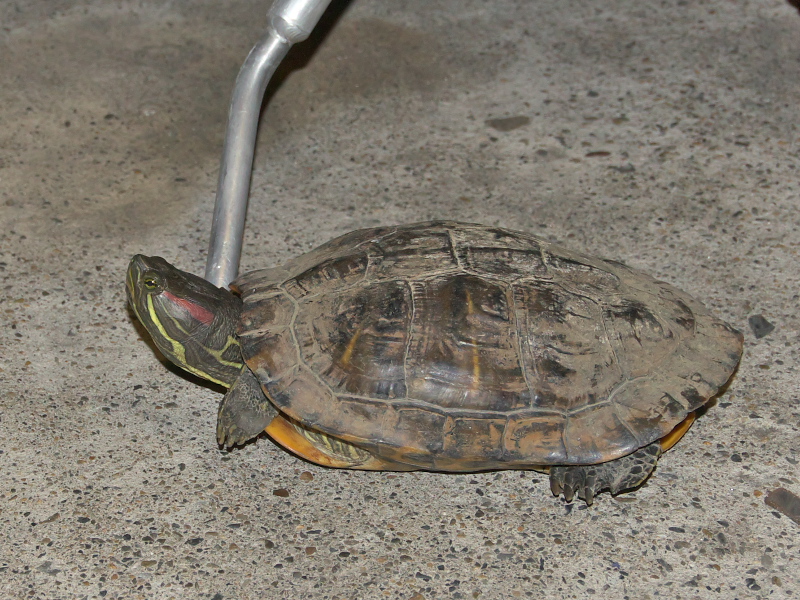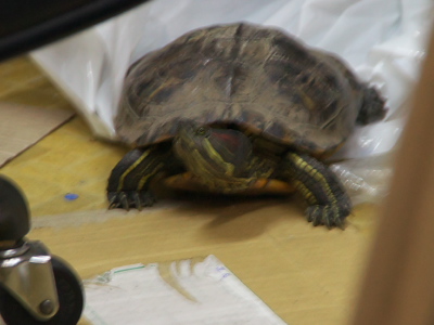この夏は節電のため店内の冷房は使わず、自動ドアをいつも開けっぱなしにしているので、知らないうちに「ご来店」なさってたのかミシシッピアカミミガメ!?!?
