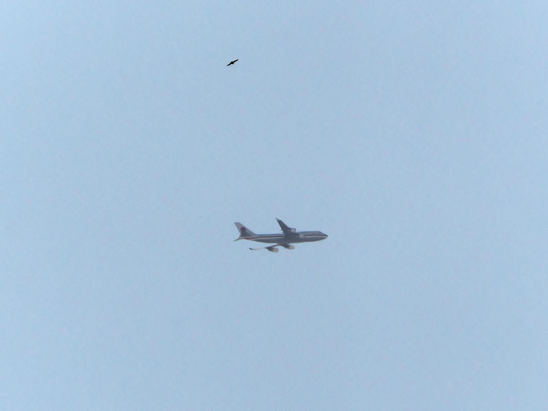 常に2機体制で任務に就く政府専用機のうち、これは2機目の方だったようなので実際にこの中にどじょうが乗っているかどうかは定かでないが、上空から猛禽類が狙いを定めているところを見ると、やはり「どじょう運搬中」のようだ(笑)。