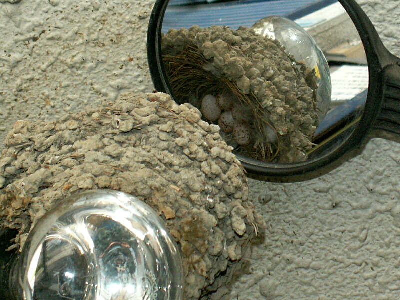 で、留守の隙に巣の中をミラーで覗くと―――