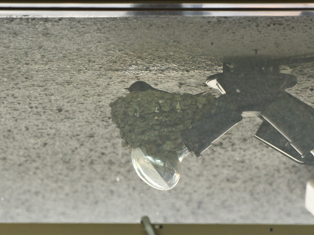 TWK入り口のツバメが巣の中に深々と入っていることが多くなった。