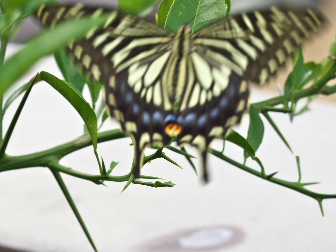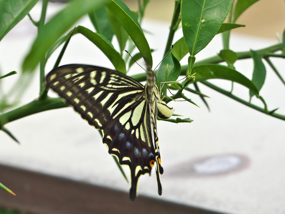 TWK入り口横のツバメの巣の中は毎日一個ずつ卵が増えて、きょうは3個になってましたが、TWKの屋上も今「産卵ラッシュ」。今回はアゲハチョウ編です。