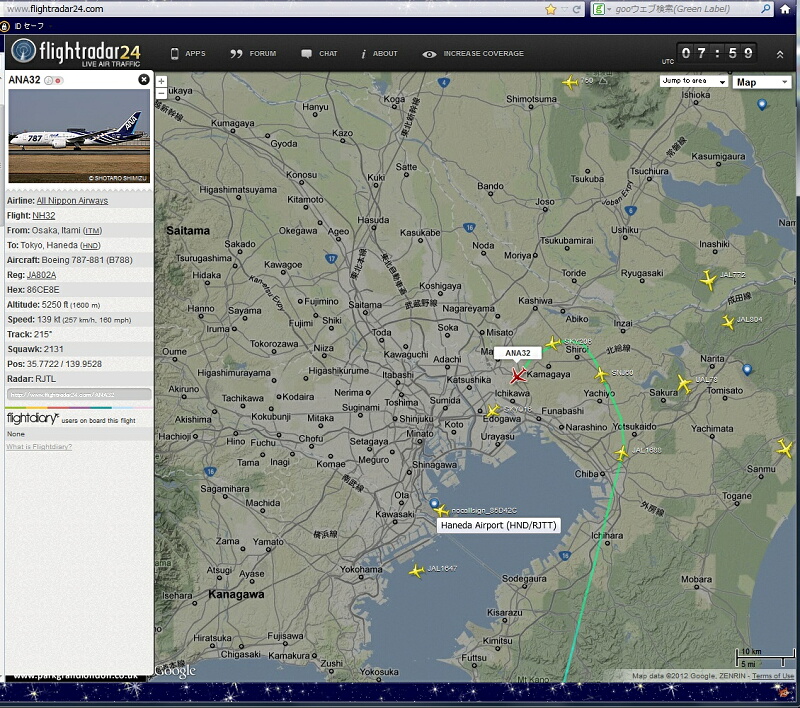 どうやら羽田到着機の飛行ルートが南風で視界不良の時の