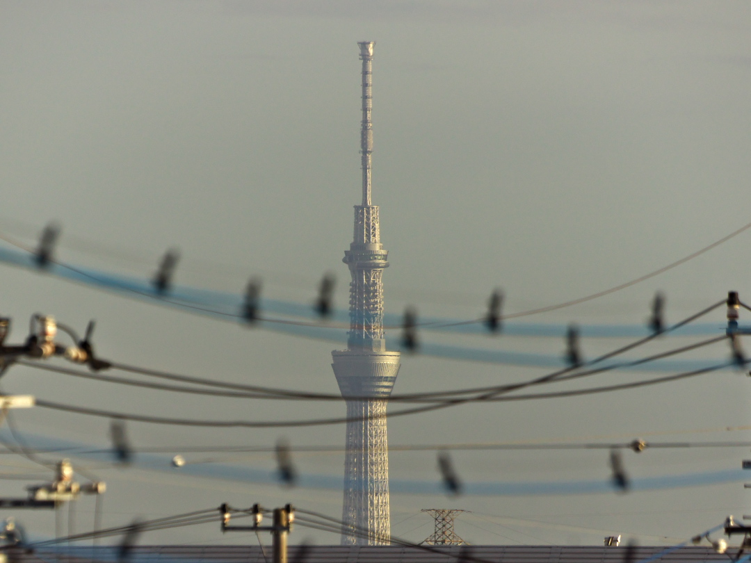 ↑いつもは逆光で真っ黒に見える東京スカイツリーも、西日を浴びて黄金色に輝いていました(@_@;)。