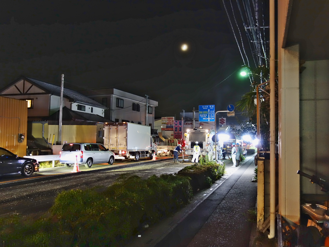 ここのところTWK前の県道で夜中に工事が行なわれることが多い↓