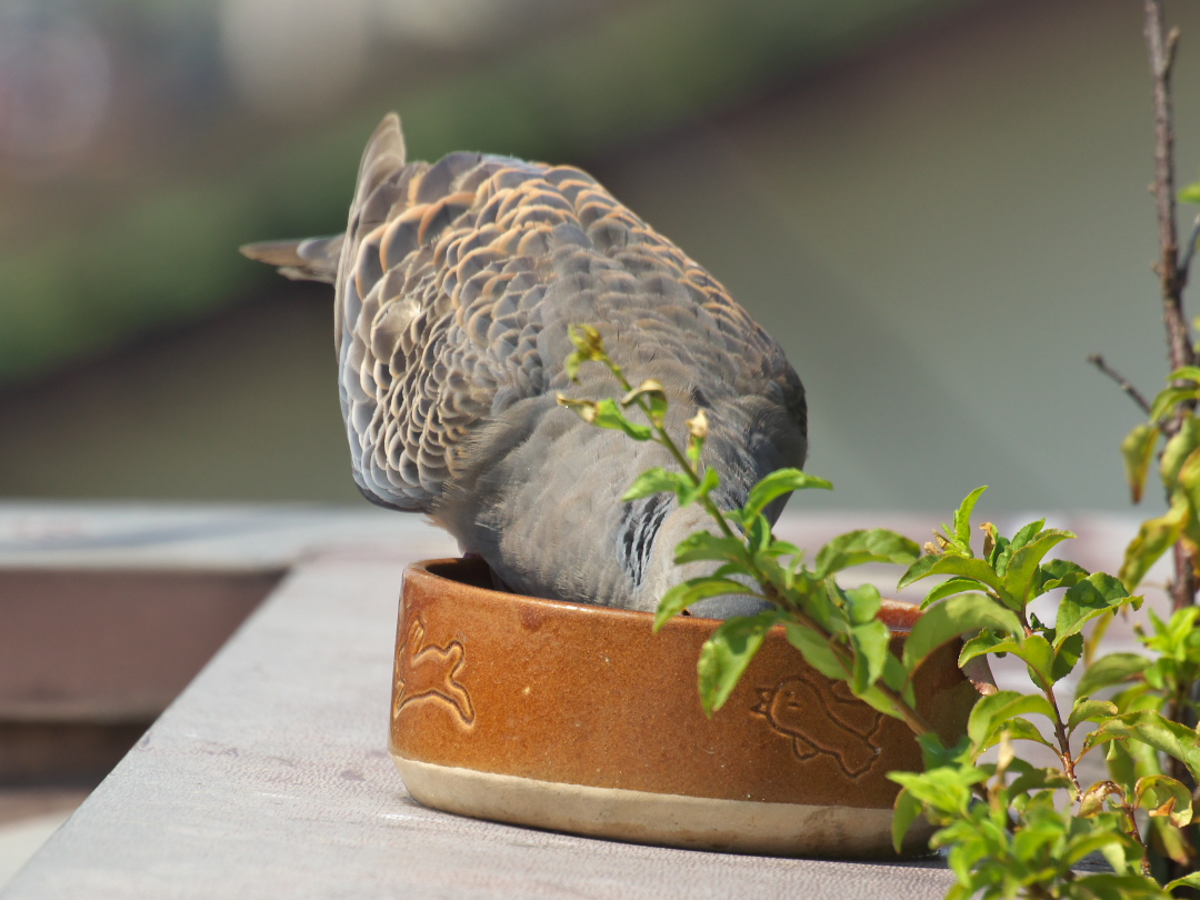 キジバトが、ガブガブと水を一気飲み(?)してました(^_^;)。